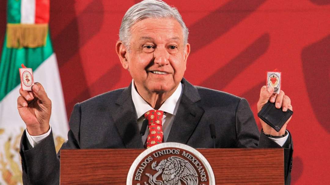 Ante la crisis económica por el #COVIDー19 y el cierre de fronteras de diversos países, @lopezobrador_ sacó escapularios de su cartera y dijo que el «escudo protector es la honestidad, el no permitir la corrupción».
