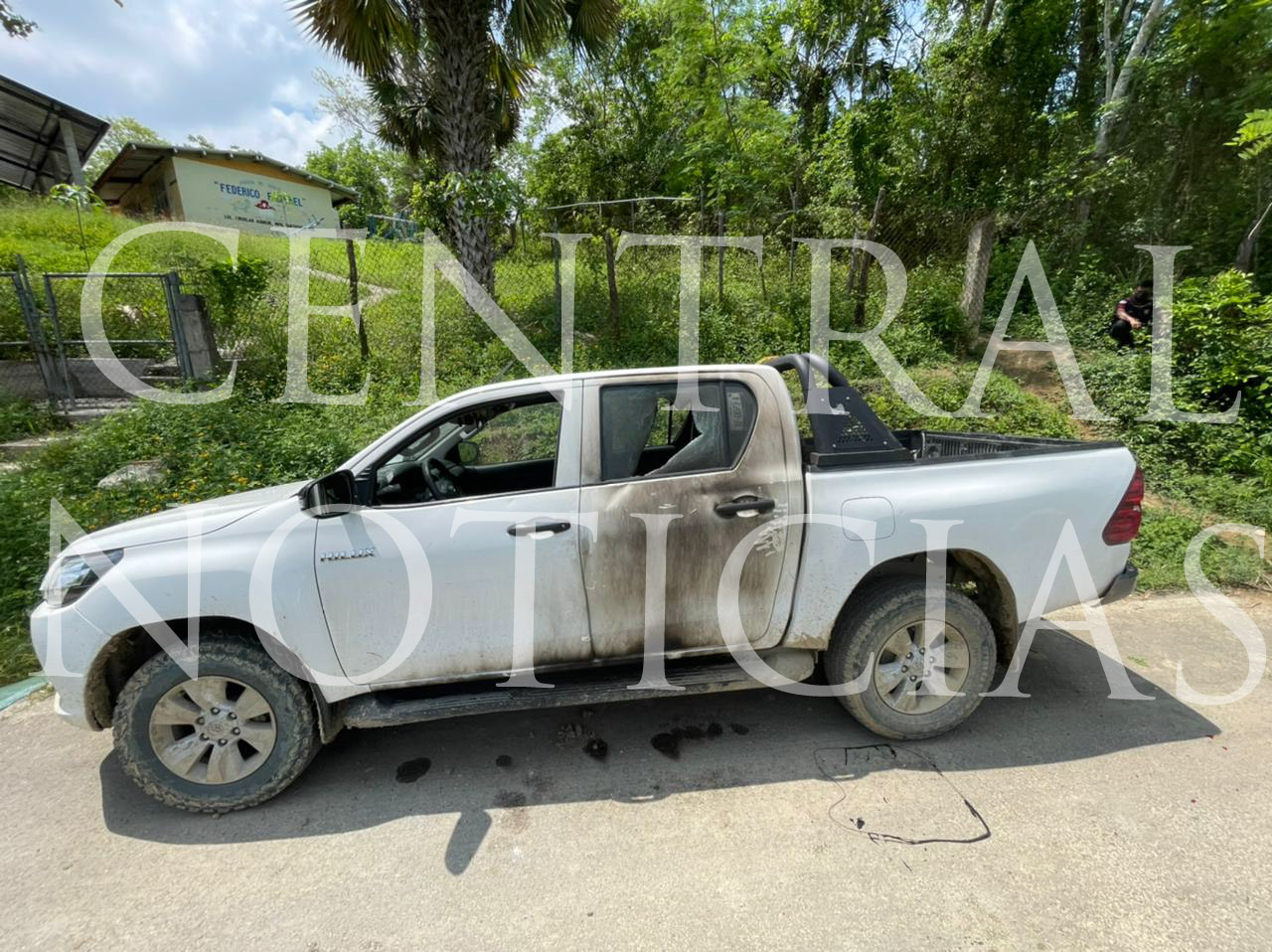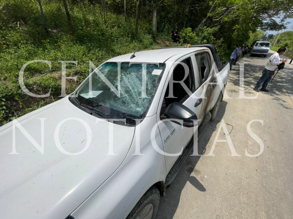 La camioneta Toyota, Hilux, de color blanca y con placas de circulación XF-0073-A del Estado resultó con daños en el parabrisas, medallón, e interior del vehículo.