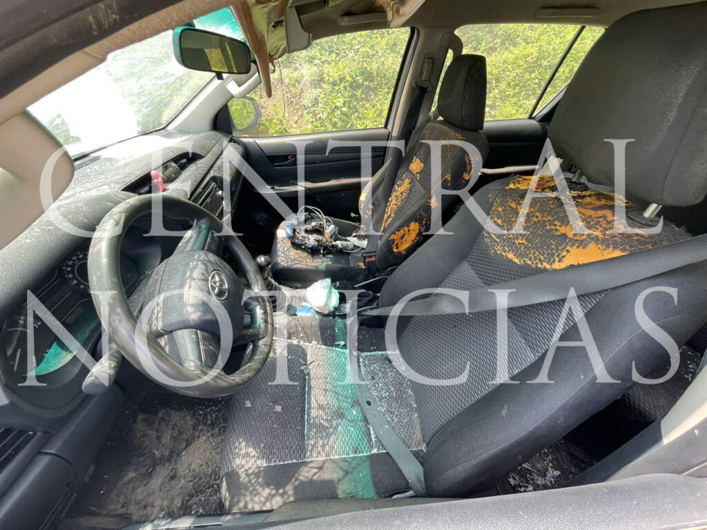 Una camioneta de reciente modelo fue vandalizada por sujetos desconocidos la mañana de este Domingo en la localidad de Ciruelar, congregación Aquiche.