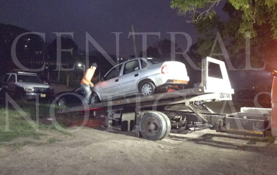 El vehículo abandonado de la línea Chevy, Monza, de color gris y con placas de circulación YFJ-752-A del Estado de Veracruz fue localizado fuera de la cinta asfáltica a la altura del poblado de Sombrerillo, sobre la carretera estatal Tantoyuca – Remanso.