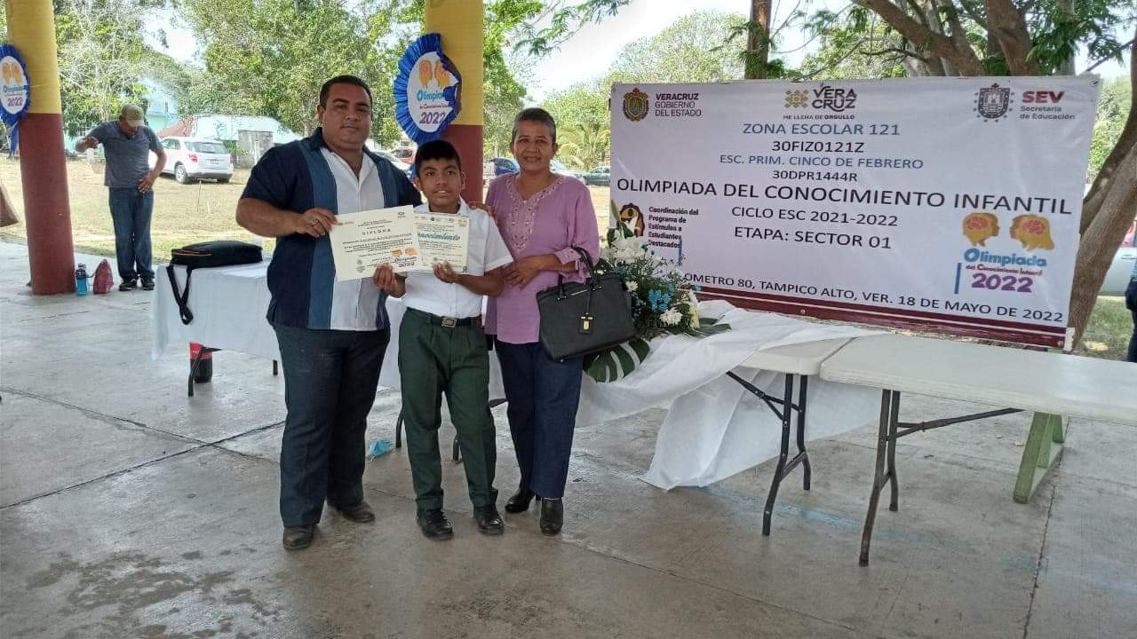La justa académica se celebró el pasado 18 de mayo en el vecino municipio de Tampico Alto, este importante triunfo, en el que representó a la zona escolar 225, le permitirá a José Ángel el derecho de participar en la tercera etapa de la olimpiada a realizarse en Xalapa Veracruz.