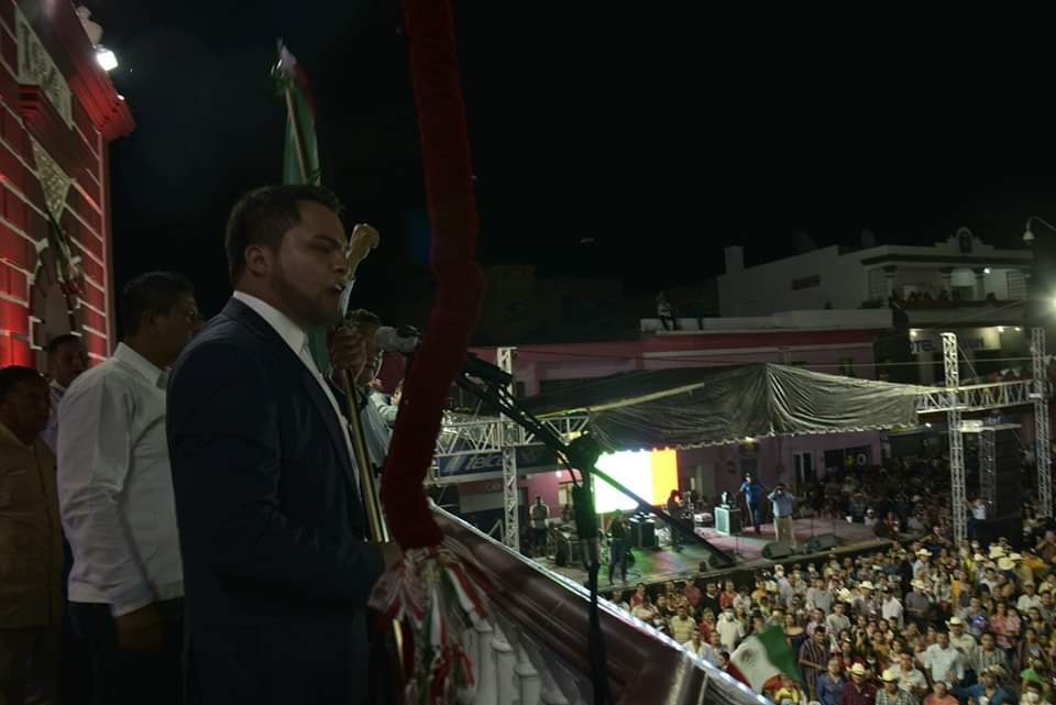 Tempoal, Ver.- Néstor Rodolfo Rivera Pérez, en compañía del ingeniero Celestino Rivera, el secretario de gobierno Manuel Velasco y toda su comuna dieron el grito de independencia desde el palacio municipal de Tempoal de Sánchez.